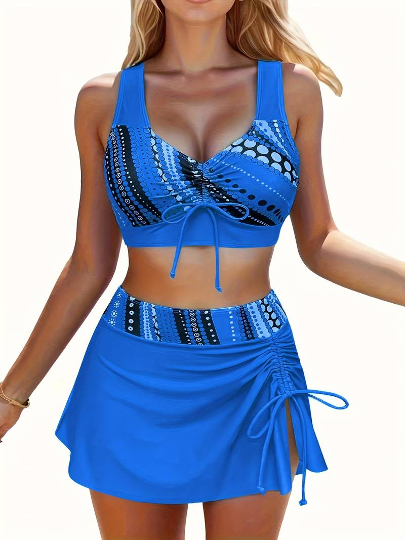 Esta maya color Turquesa es un conjunto de tres piezas diseñado para quienes valoran la calidad y el estilo refinado. Cada pieza, elaborada en tonos turquesa vibrantes, aporta armonía y sofisticación a tu look.